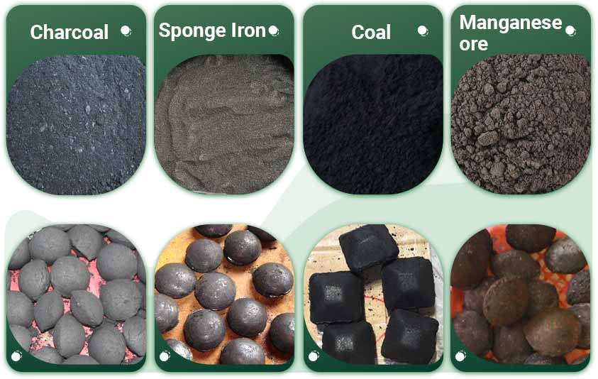 The briquettingmachine also can be used to press iron filings, iron oxide scale, coal powder, ironpowder, coking coal, aluminum powder, gypsum, tailings, carbon powder, slag,sludge, kaolin, activated carbon, coke powder and other powders.