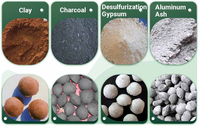 The briquettingmachine can be used to press iron filings, iron oxide scale, coal powder, ironpowder, coking coal, aluminum powder, gypsum, tailings, carbon powder, slag,sludge, kaolin, activated carbon, coke powder and other powders.